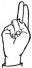 На ћирилици написано БУДИМИР ТРИШОВИЋ састоји се из 15 слова [?]. Исписано ћириличном једноручном азбуком за глувонеме: